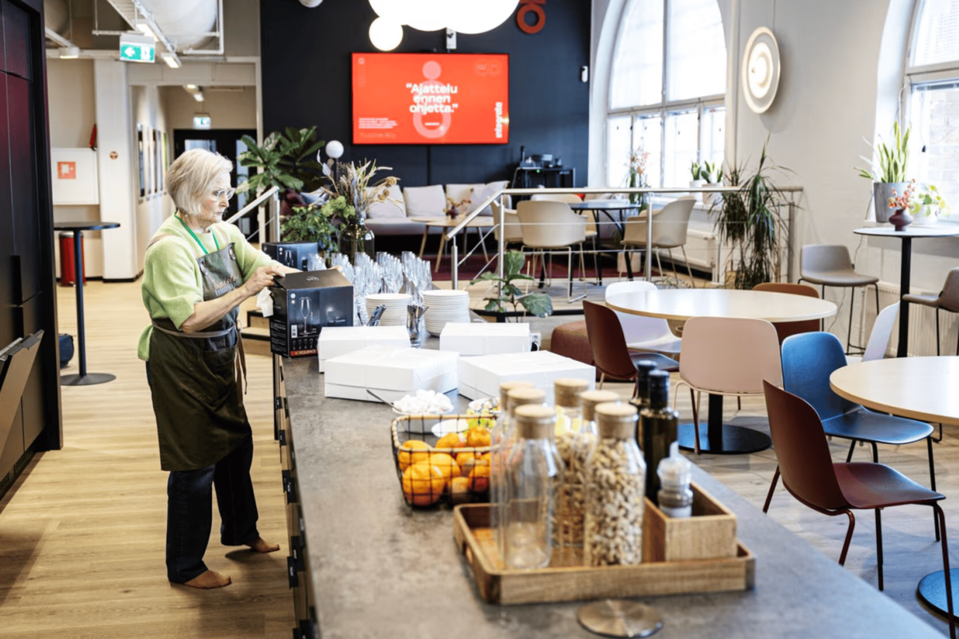 Osaavatko työntekijäsi pitää kunnon taukoja? Kohtaavatko eri tiimit toisiaan? Miten tärkeä ja konkreettinen työhyvinvoinnin, jaksamisen ja yrityskulttuurin teko työnantajalta onkaan, että mummo keittää kahvit ja kutsuu koko työporukan yhteiselle tauolle.